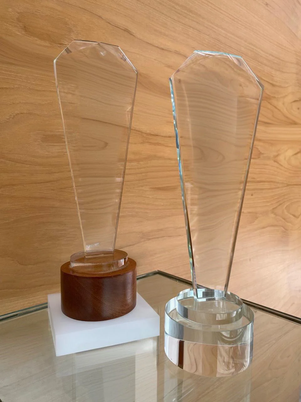 Customized Trophy: crystal base , available in wooden base